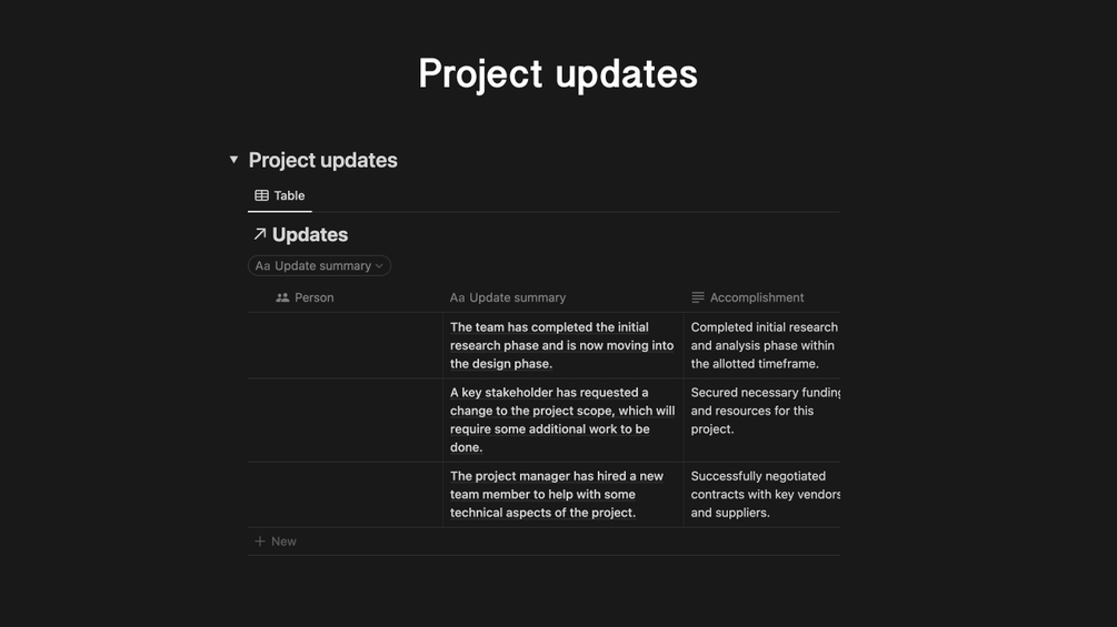 • Keep your team informed with the project updates section. Share progress reports, and accomplishments to maintain transparency and accountability.