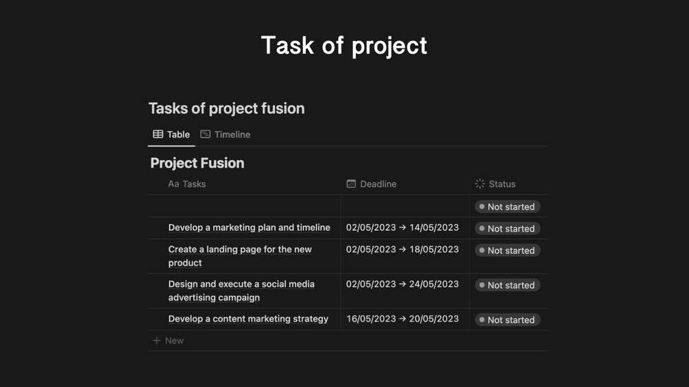 • Stay on top of your project's progress with the tasks section. assign and track tasks, set deadlines, and monitor completion status to ensure a smooth workflow.