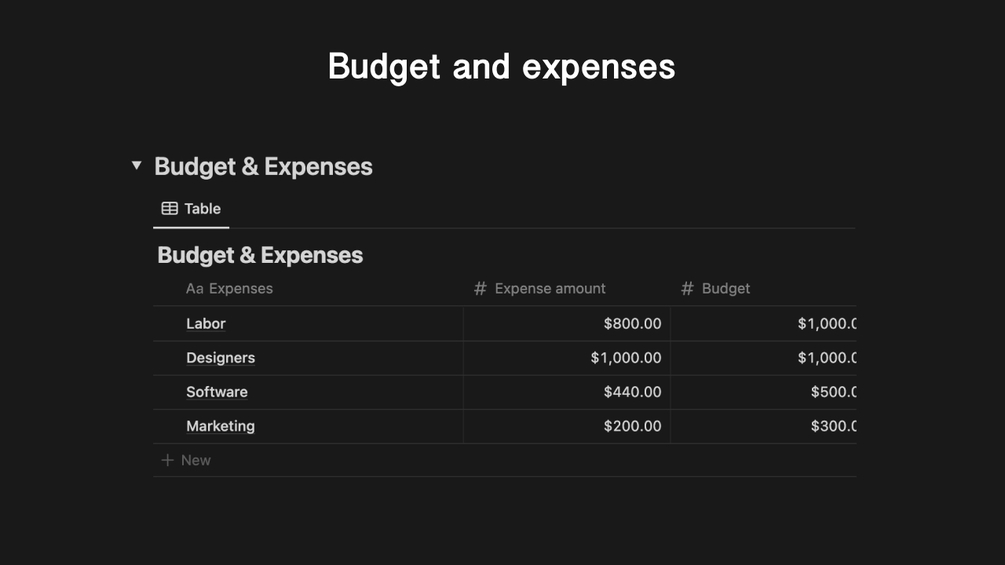 • keep your finances under control with the budget and expenses section. log expenses and monitor budgeted vs actual costs to stay on track and avoid surprises.